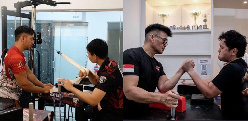 To give the sport “a certain level of legitimacy,” Gregory decided to take matters into his own hands, and that’s when Eastside Arm Wrestling came about. The gym was launched in Sept 2025 with startup costs of around S$10,000 to S$20,000.