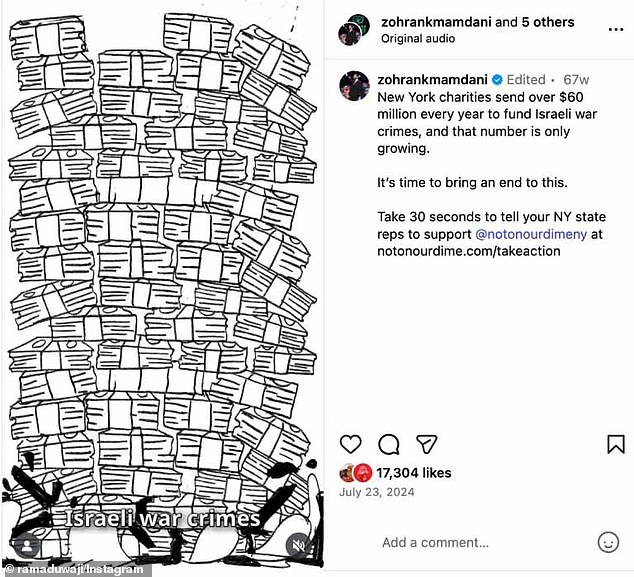 One of her most notable works features an image of a stack of U.S. bills labeled “Israeli war crimes.” This artwork was shared by Mamdani himself in July 2024, accompanied by a message stating, “New York charities send over $60 million every year to fund Israeli war crimes, and that number is only growing. It’s time to bring an end to this.” The post sparked significant debate among supporters and critics alike.
