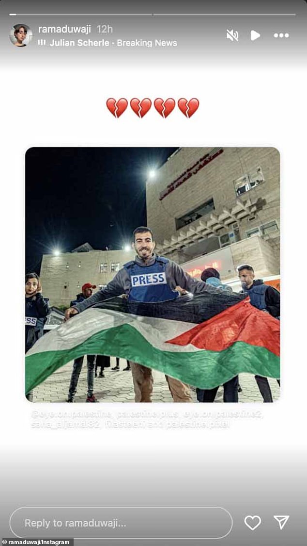More recently, Duwaji raised eyebrows by posting four broken heart emojis on top of a picture of Palestinian social media influencer Saleh Al-Jafarawi, known as Mr FAFO. Al-Jafarawi, 28, was killed last month by an anti-Hamas militia reportedly armed by Israel. Videos circulating on social media appeared to show him celebrating the October 7 attacks.