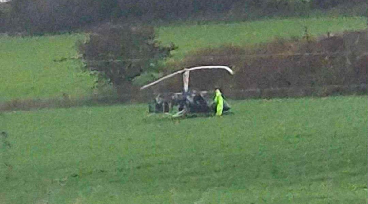 The incident occurred around 1:25 pm on Thursday near the village of Lostock. According to reports from the Manchester Evening News, the pilot was forced to make a hard landing after the propeller of the gyrocopter was struck during flight. A witness recorded the moment the gyrocopter leaned to the right and plummeted from the sky.