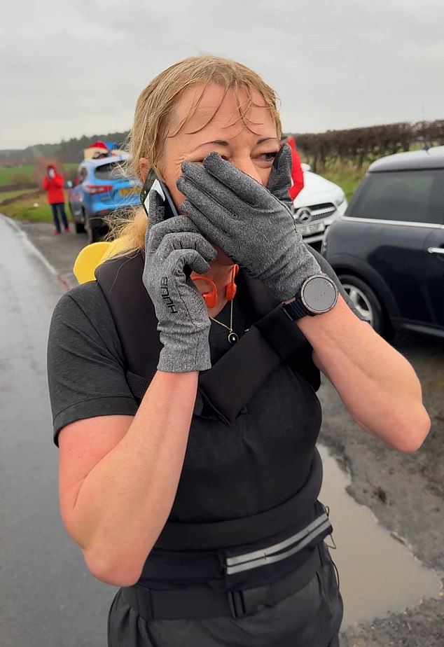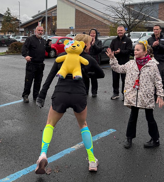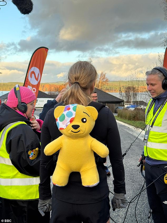 Sara added the weather conditions were 'pretty bad' and she'd accepted she would have to get 'wet and cold'. After months of intensive training, Sara headed off while carrying a Pudsey Bear backpack weighing only 270 grams.