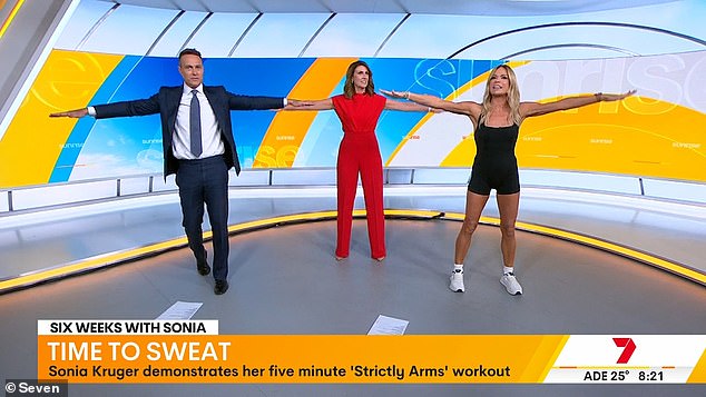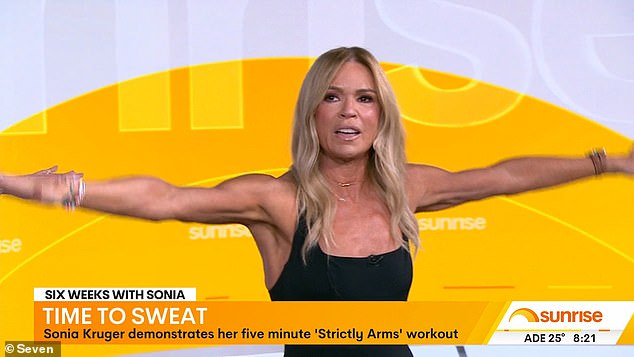 'It's not about being skinny, it's about being strong,' she said before starting the routine. She shared five exercises that she claims are essential for achieving toned arms. 'Every woman, and man, is going to stop in their lounge room and go, "I want Sonia's arms,"' Natalie exclaimed excitedly.