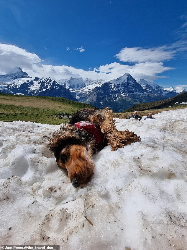 From playing in the snowy French Alps to doggy-paddling in Austria's turquoise lakes, Fletcher's explorations are enough to make any traveler jealous.