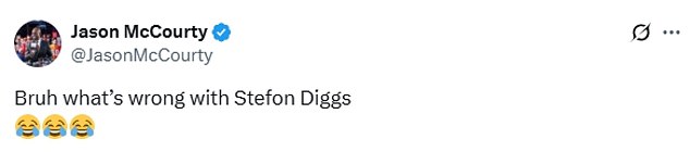 The incident led to a wave of criticism from fans and analysts alike. Jason McCourty, a former NFL player and current analyst, posted the clip on X and wrote: "Bruh what’s wrong with Stefon Diggs." His comment resonated with many others who expressed their disappointment.