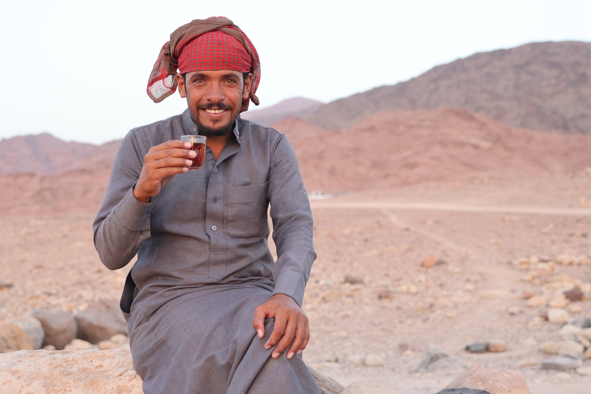 Suleiman Hasaseen’s eyes glisten as he tells me about growing up in Feynan. We’re perched on a flat rock on top of a sandstone escarpment, sharing ‘Bedouin tea’ – a sweet black brew with hints of cinnamon and cardamom. As we chat, the peach-coloured sun dips beneath the horizon.